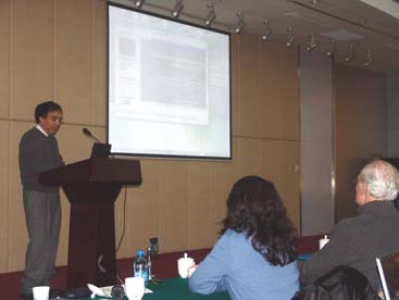 米謝尔•范何夫教授首先为大家介绍了香港城市大学及物理及材料科学系的历史、现状和发展前景,并就当今物理与材料领域内的研究现状做了高度概括。随后以“Nanostructure from STM and LEED”为题开始了他的讲演。在讲演过程中范教授不时为大家阐述纳米结构表面与界面的有关概念及结构重建对材料物理性能的影响,并着重介绍了STM和LEED在纳米结构材料研究中的重要作用和具体应用。范教授研究领域广泛而深入,成果卓著,他幽默风趣的演讲风格和地道的英语水准博得了大家的阵阵掌声。