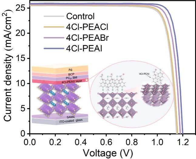 图1 基于4Cl-PEAX分子的器件结构示意图及相应器件的J-V曲线