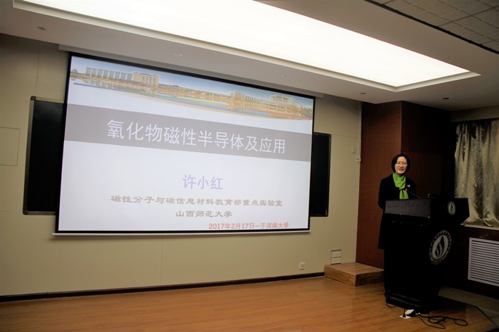 2月17日上午,应特种功能材料重点实验室邀请,山西师范大学教授、博士生导师、国家杰出青年科学基金获得者许小红教授和西安交通大学材料科学与工程学院闵泰教授来实验室进行学术交流。许小红教授为实验室师生做了题为“氧化物磁性半导体及应用”的学术报告。闵泰教授做了题为 Status and Outlook of STT-MRAM Technology的精彩报告。本次报告会由实验室副主任白锋教授主持,实验室和物理学院的师生慕名参加。