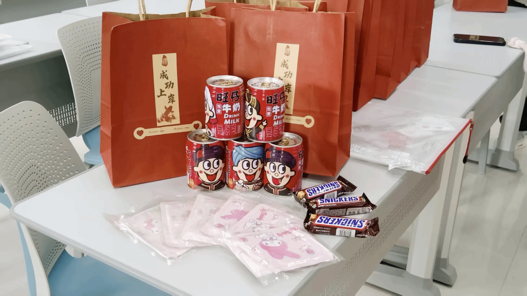 随后,石宇珺与曹怡娴一同为同学们发放学院精心准备的礼品。礼品精巧实用,每一份都承载着学院的深深牵挂与殷殷期盼,既是备考路上的温暖陪伴,也是冲刺阶段的坚实助力。